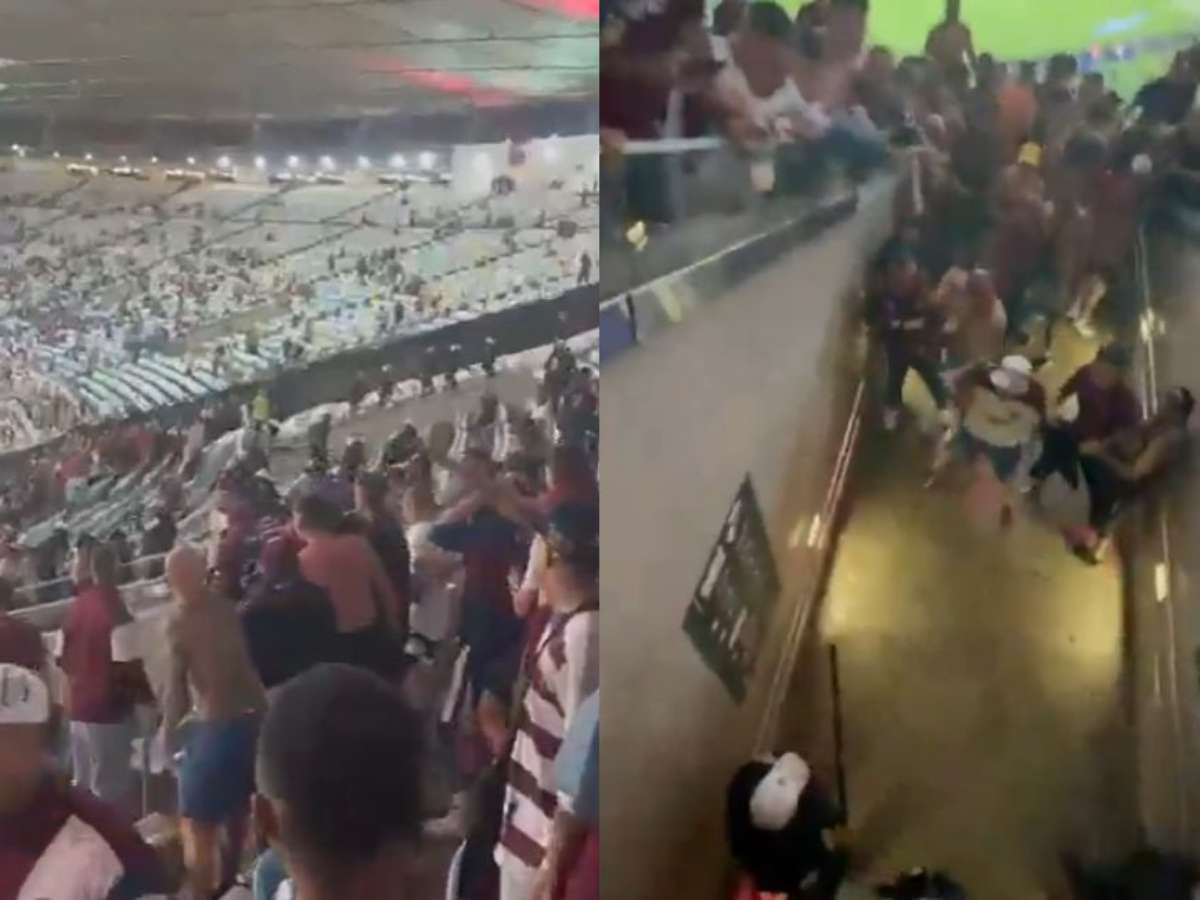 Confusão generalizada no setor onde está a torcida do Lánus no Maracanã.