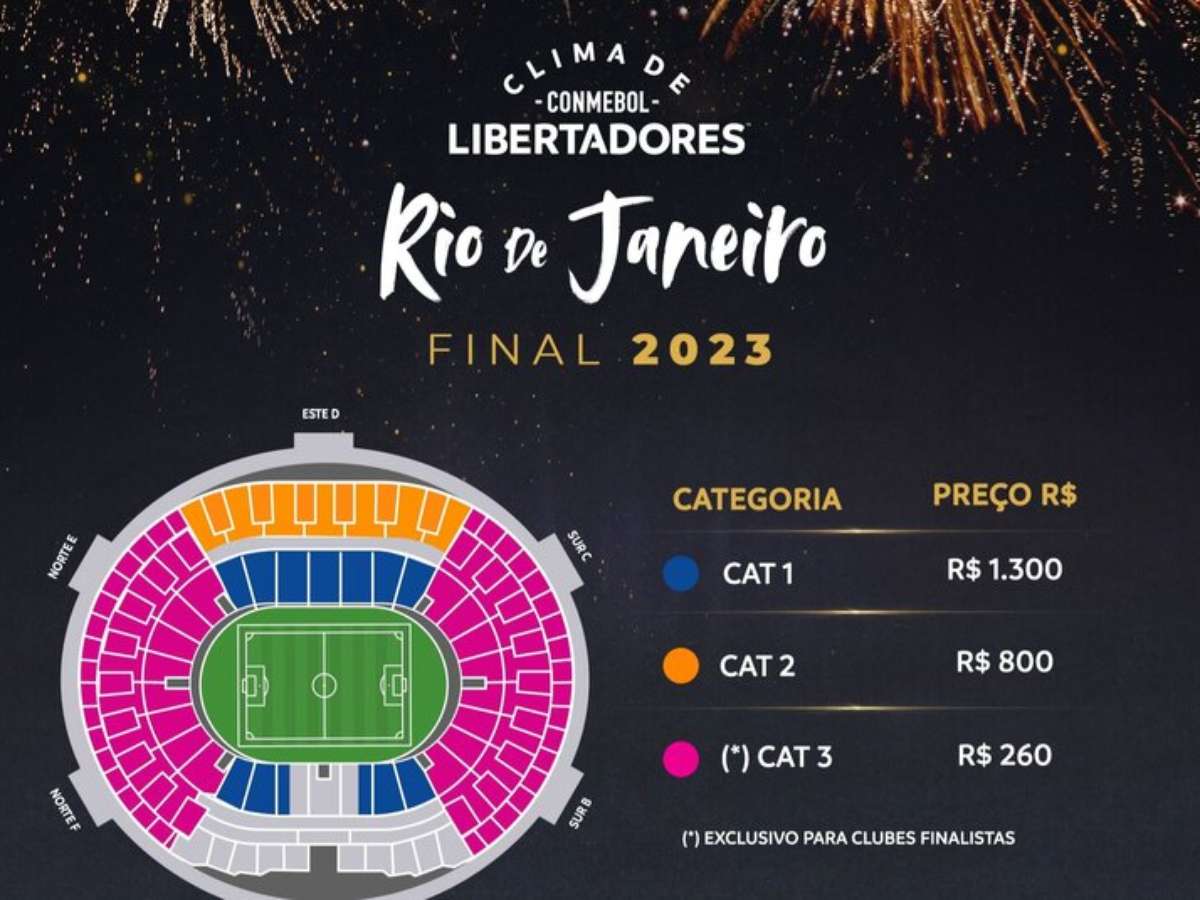 A Conmebol anunciou que a venda dos ingressos para a final da Libertadores 2023 começou nesta terça-feira (12). A entrada mais em conta para a grande decisão do dia 4 de novembro, no Maracanã, custa R$ 260,00 (exclusivo para clubes finalistas).