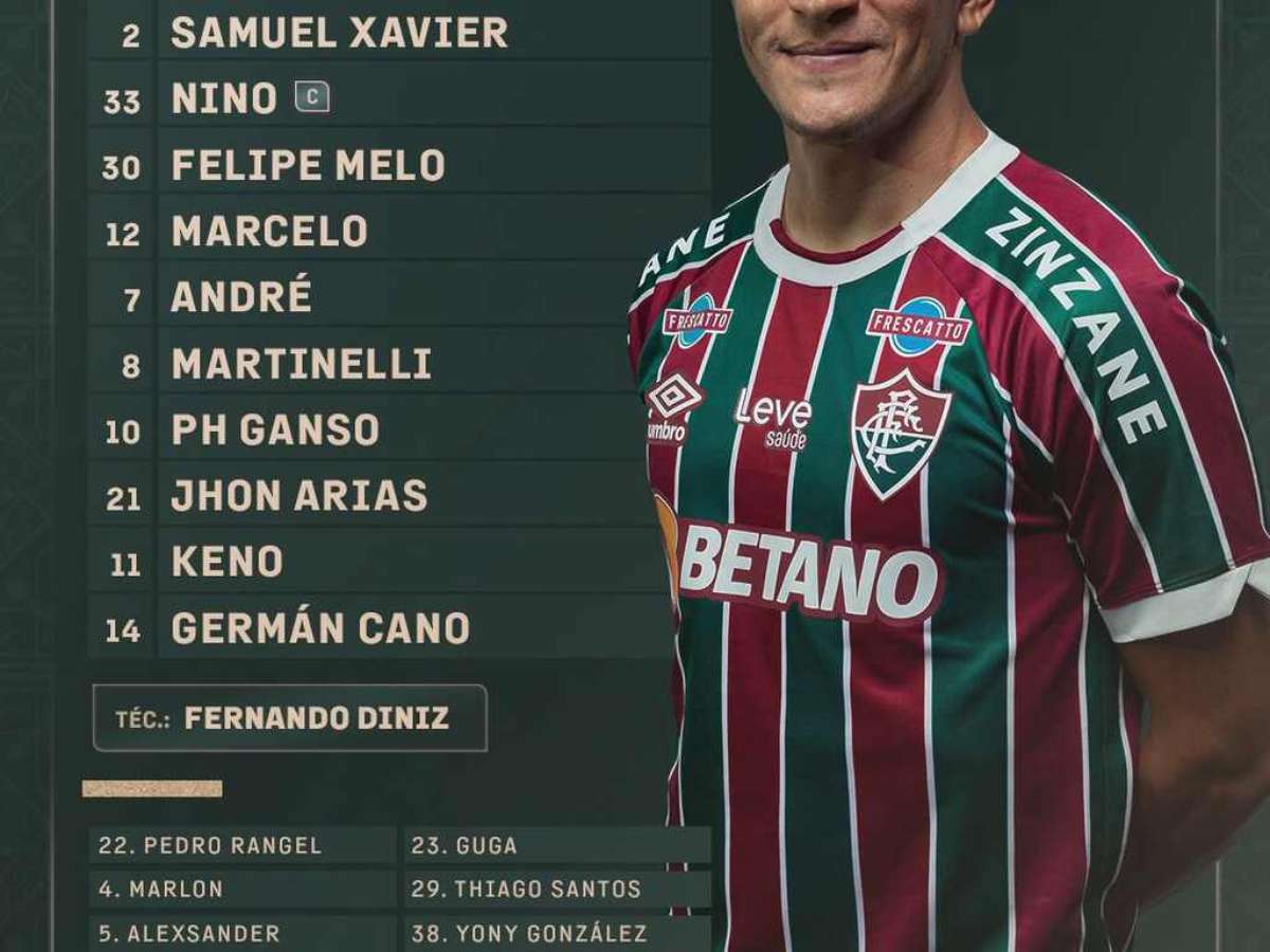 Desse modo, o time irá a campo com Fábio; Samuel Xavier, Nino, Felipe Melo e Marcelo; André, Martinelli e Ganso; Jhon Arias, Keno e Germán Cano.
