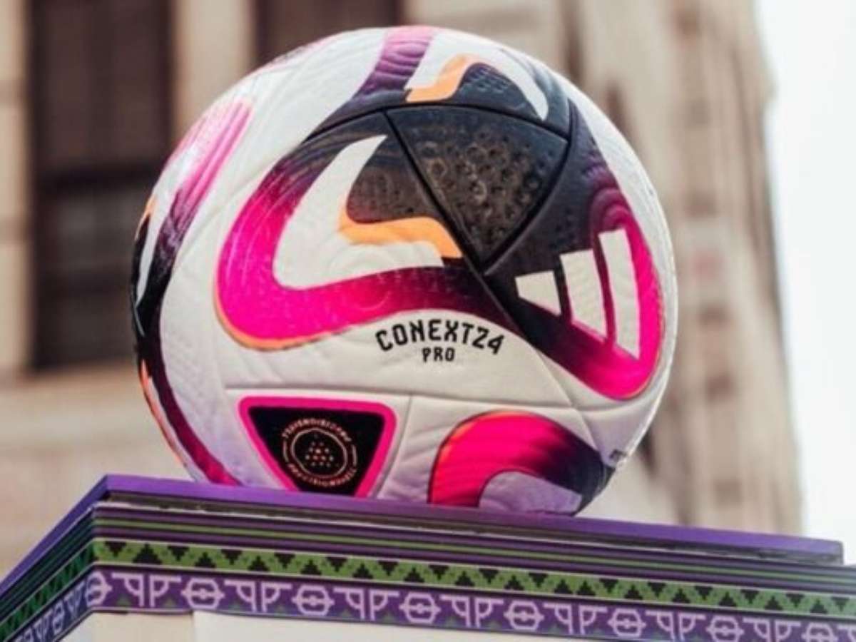 Desenhada pela Adidas, patrocinadora da Fifa desde 1970, a bola chama-se "Conext 24". O objeto é branco, com detalhes em preto, rosa e laranja.