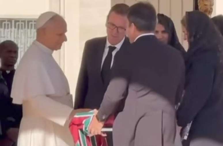 Papa Leão XIV é presenteado com camisa do Fluminense