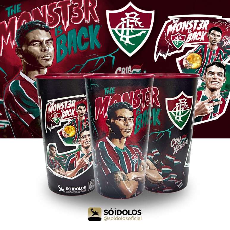 Isso porque o clube, em parceria com a empresa "Só Ídolos", especializada na confecção de materiais especiais para jogadores, criou um copo comemorativo para o jogador, que será lançado nesta sexta-feira (07), no evento que marca o retorno de Thiago Silva ao Tricolor. O item contém as inscrições "Cria de Xerém" e "The Monster is Back" (o Monstro está de volta), em alusão à sua formação no Fluminense e o apelido que conquistou durante a carreira.