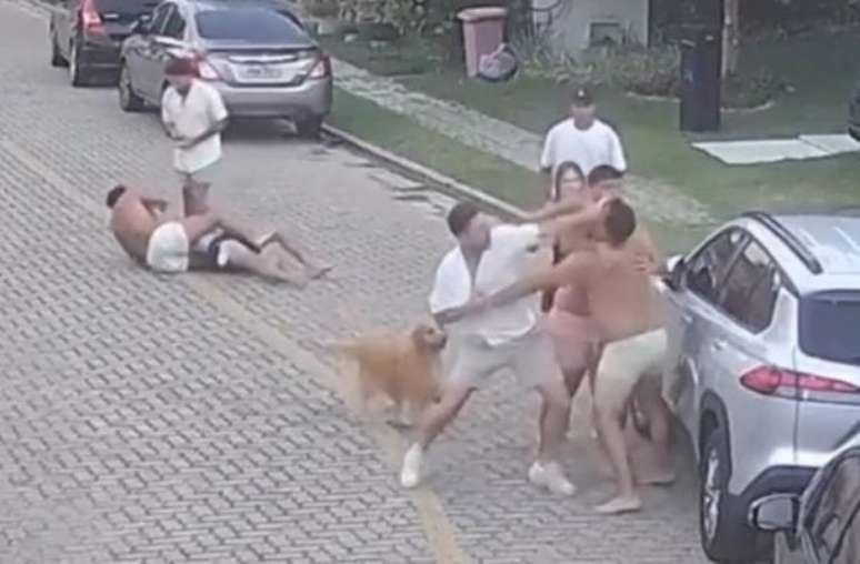 Uma câmera de segurança registrou uma confusão envolvendo jogadores do Fortaleza e moradores de um condomínio de alto padrão em Eusébio, na Região Metropolitana de Fortaleza. A briga ocorreu na manhã do dia 1º de janeiro de 2026, após uma queixa sobre som alto, e as imagens circularam nas redes sociais nesta quarta-feira (14).