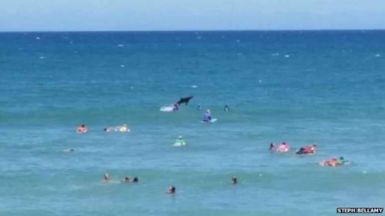 Steph disse que estava fotografando os esportistas quando viu um salto na água. "O tubarão realmente saltou duas vezes", disse ela à BBC.