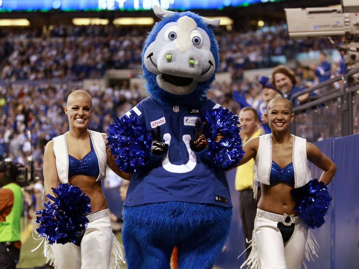 Cheerleaders carecas e mascote dos Colts