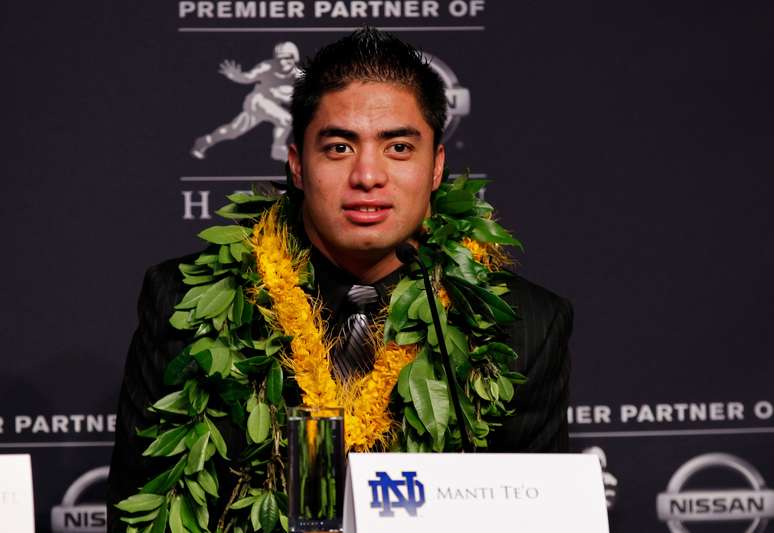 Uma história bizarra tomou as manchetes de esporte dos Estados Unidos na noite da última quarta-feira. O principal envolvido é o jogador de futebol americano universitário Manti Te'o, da Universidade de Notre Dame, apontado como uma das maiores promessas do esporte e que passou por um drama familiar em setembro: sua avó e sua namorada teriam morrido no mesmo dia, em um intervalo de seis horas, em meio a uma sequência impressionante de vitórias de seu time. O problema é que a suposta namorada do atleta pode nunca ter existido.