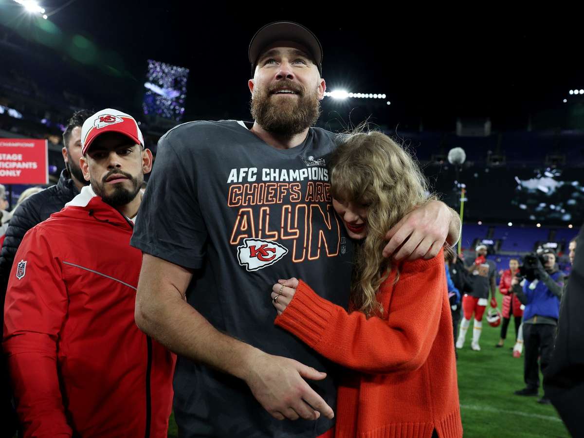 Taylor Swift está noiva do jogador Travis Kelce, com quem iniciou o relacionamento em 2023. Desde então, passou a ser presença frequente no jogo dos Chiefs, em especial no Arrowhead Stadium.