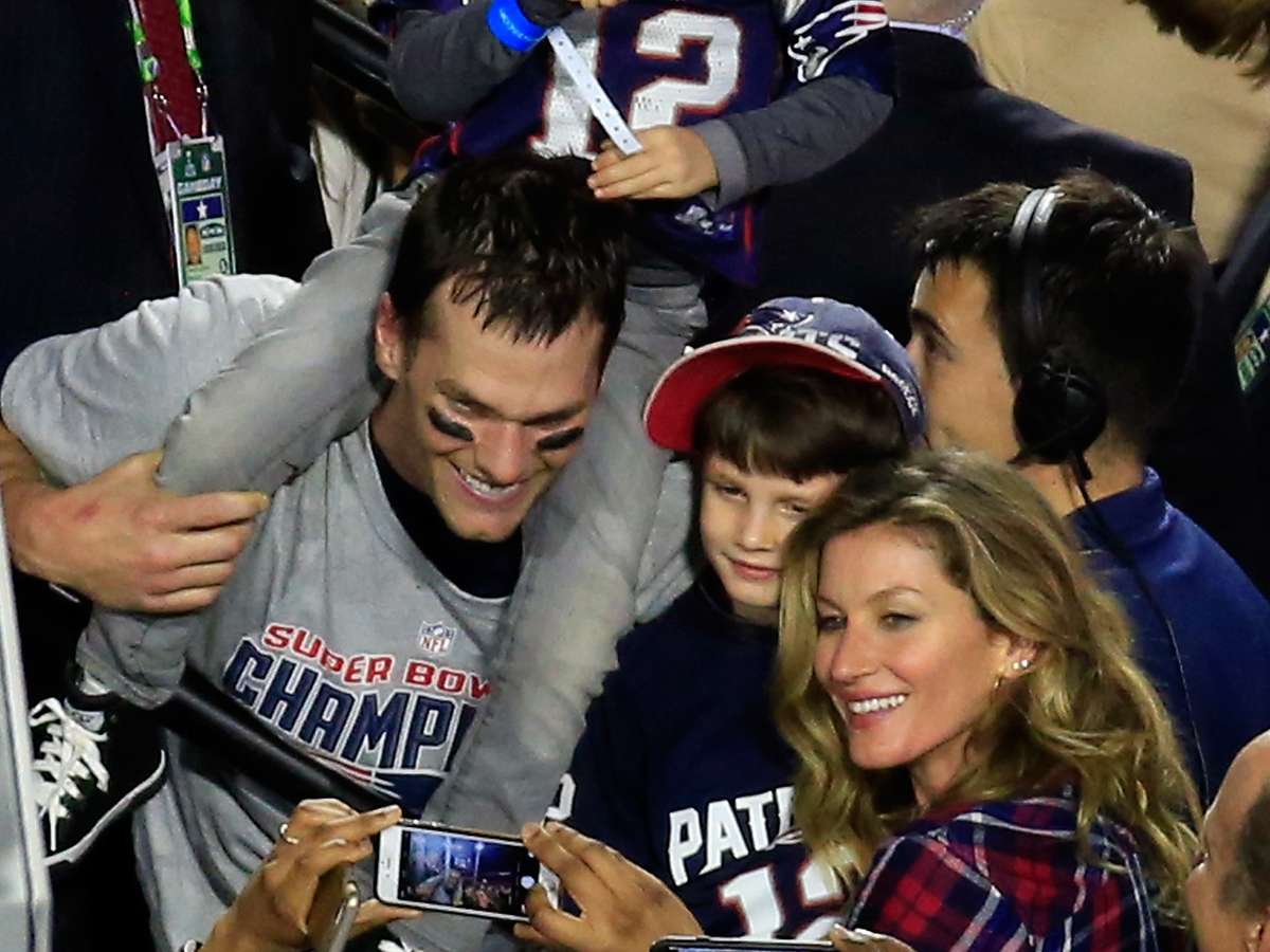 Gisele Bündchen faz festa com marido Tom Brady e seu filho John Edward Thomas Moynahan