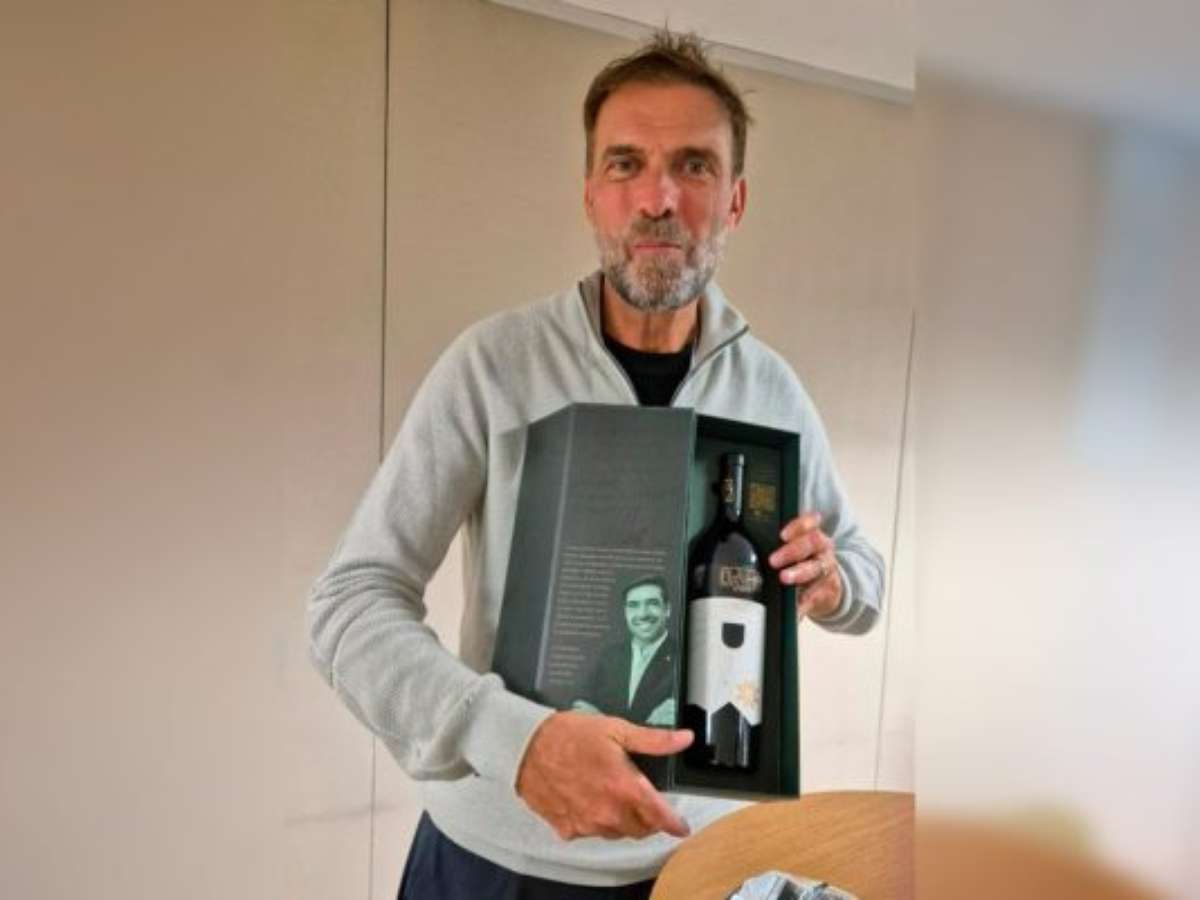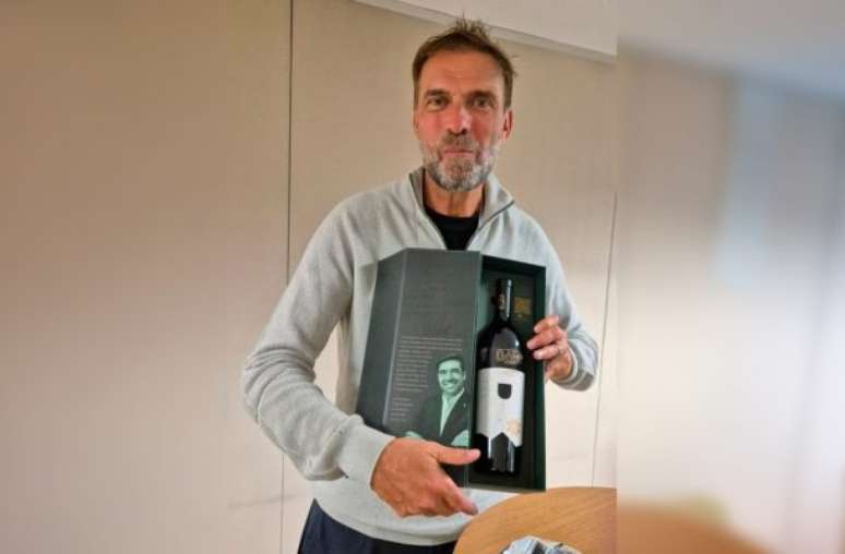 A passagem de Jürgen Klopp no Brasil lhe rendeu um presente do técnico Abel Ferreira, do Palmeiras: um vinho da edição especial do treinador português.