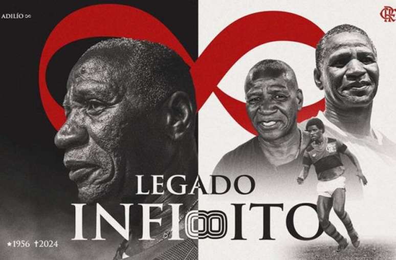 Adílio, um dos maiores da história do Flamengo, morreu aos 68 anos, nesta segunda-feira. Foto: Arte / CR Flamengo