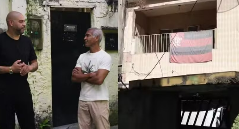 No passeio, os dois visitaram a casa onde Adriano morou com a avó. Na varanda, uma bandeira do Flamengo chamava a atenção. O local também é especial por ficar próximo ao campo onde o ex-atacante deu seus primeiros chutes.