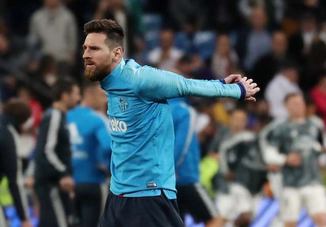 Messi faz aquecimento antes do grande clássico. (foto: Susana Vera/Reuters)