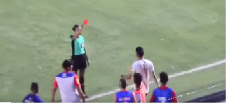 Árbitra expulsa jogador e recebe tapa na cara durante partida de futebol; veja vídeo