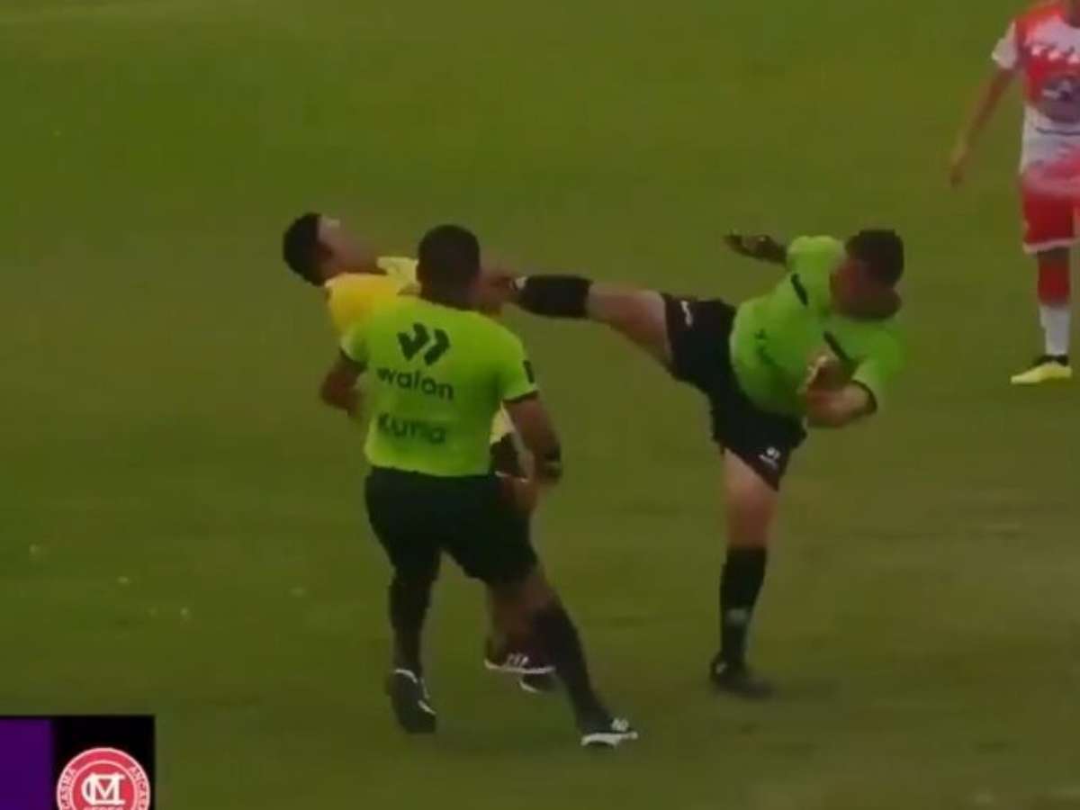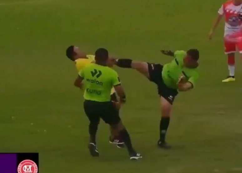Membro de comissão técnica leva chute no rosto após invadir e partir para cima do juiz