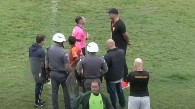 Após o acionamento do protocolo, o diretor da partida e agentes da PM foram ao campo e ouviram o relato do garoto. Visivelmente abalado, ele foi retirado do jogo e não retornou. A partida foi retomada após alguns minutos.