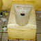 O Estádio Serra Dourada tem 53 banheiros, separados por setores: gerais, arquibancadas, cadeiras e tribunas. A arquibancada é o setor que conta com mais banheiros: 24. Cada banheiro tem sete vasos sanitários, sendo um destinado a cadeirante, um mictório de uns quatro metros de extensão e duas pias com cinco torneiras cada. As portas de entrada para o banheiro são de grade e, normalmente, uma fica aberta e outra fechada. Os vasos não contam com tábua e nem todos têm uma lixeira do lado para o torcedor jogar fora o papel higiênico. Todos os banheiros são pichados com símbolos e frases de torcidas organizadas. Há uma torneira ou outra quebrada, um vaso ou outro entupido, mas de modo geral os banheiros são frequentáveis. Na visita do repórter, foram contabilizados quatro vasos sanitários interditados, três torneiras quebradas e um mictório com água vazando. Antes de a bola rolar, todos os banheiros estavam limpos, com papéis higiênicos pendurados nos portões de acesso. Os vasos sanitários ficam em boxes com uma porta alta com fechaduras, daquelas que giram e do outro lado aparece as palavras livre ou ocupado. Nada está entupido. Nenhuma torneira aberta sem ninguém usar. Não há sabonete e as pessoas se enxugam na própria roupa, no corpo ou deixam secar naturalmente. As privadas são daquele modelo mais largo e baixo.