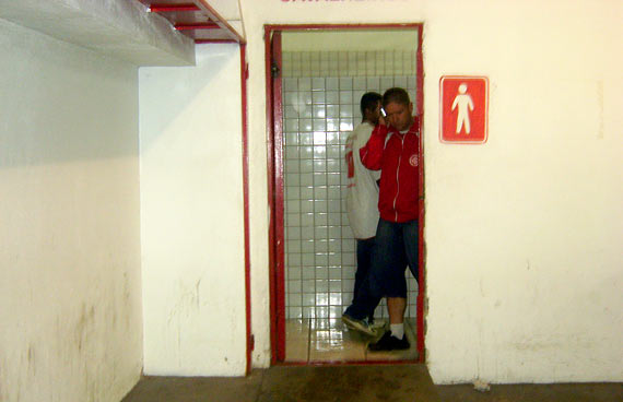 Antes de a bola rolar, o nível de limpeza encontrado era satisfatório. Apenas um funcionário fica responsável por fiscalizá-lo. Em todas as cabines foi encontrado papel higiênico. Além disso, cada cabine possui sua porta, fechadura, trinco e maçaneta em perfeitas condições. As torneiras e as descargas tinham água. Porém, não foi encontrado sabonete e nem papel para a secagem das mãos. O utilizado para isso era o higiênico. As torneiras, apesar de serem "gastadeiras", se encontravam em perfeitas condições. Já o vaso tinha uma limpeza razoável. Um pouco de barro pelo chão pode ser visto e o funcionário não limpa a borda do mesmo.