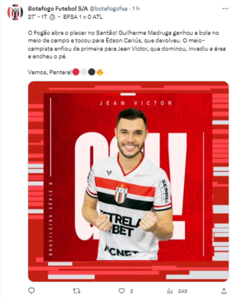 O Botafogo-SP recebeu o Atlético-GO neste sábado (16), na Arena Nicnet Eurobike/Estádio Santa Cruz, em Ribeirão Preto, em partida válida pela 28ª rodada do Campeonato Brasileiro Série B. O duelo terminou com a vitória da Pantera pelo placar de 1 a 0 com gol de Jean Victor aos 27 da primeira etapa.