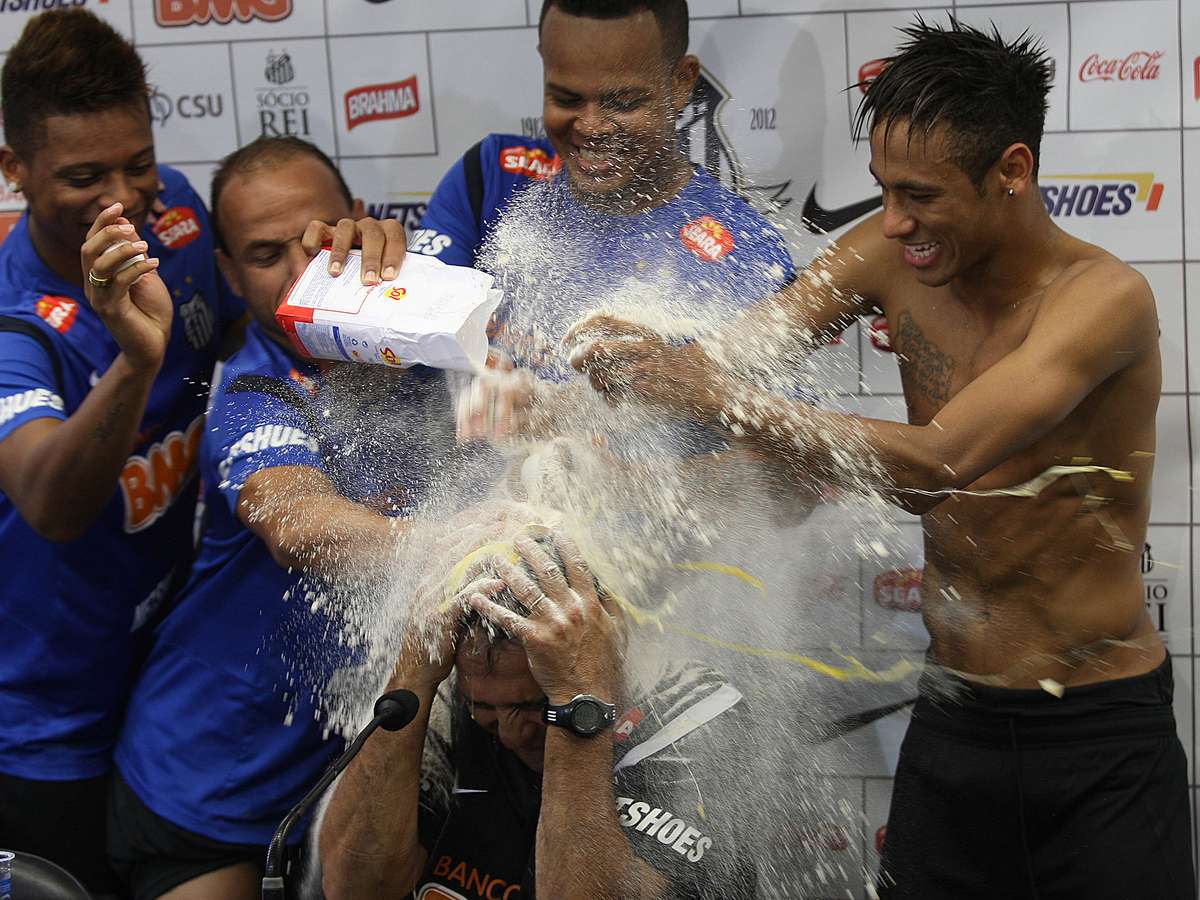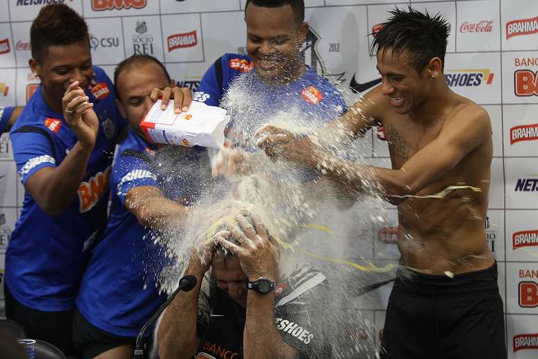 Neymar aproveitou para virar copo d'água na cabeça do já sujo Muricy