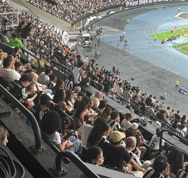 Raul Godoy/Redação Terra: Torcida do Botafogo levanta a voz após o anúncio do gol do Fluminense contra o Palmeiras. Ainda enquanto os torcedores vibravam com a bola na rede na partida do rival, Savarino abriu o placar para delírio do Estádio Nilton Santos.