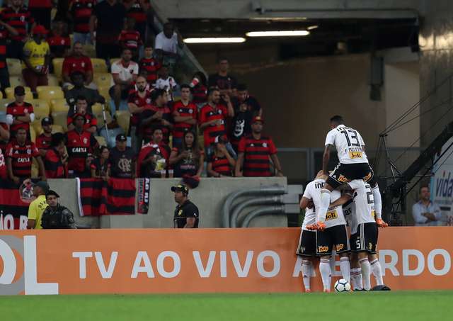 Flamengo vai agitando a torcida que compareceu ao Maracanã! Foto: Ide Gomes / Framephoto / Estadão Conteúdo