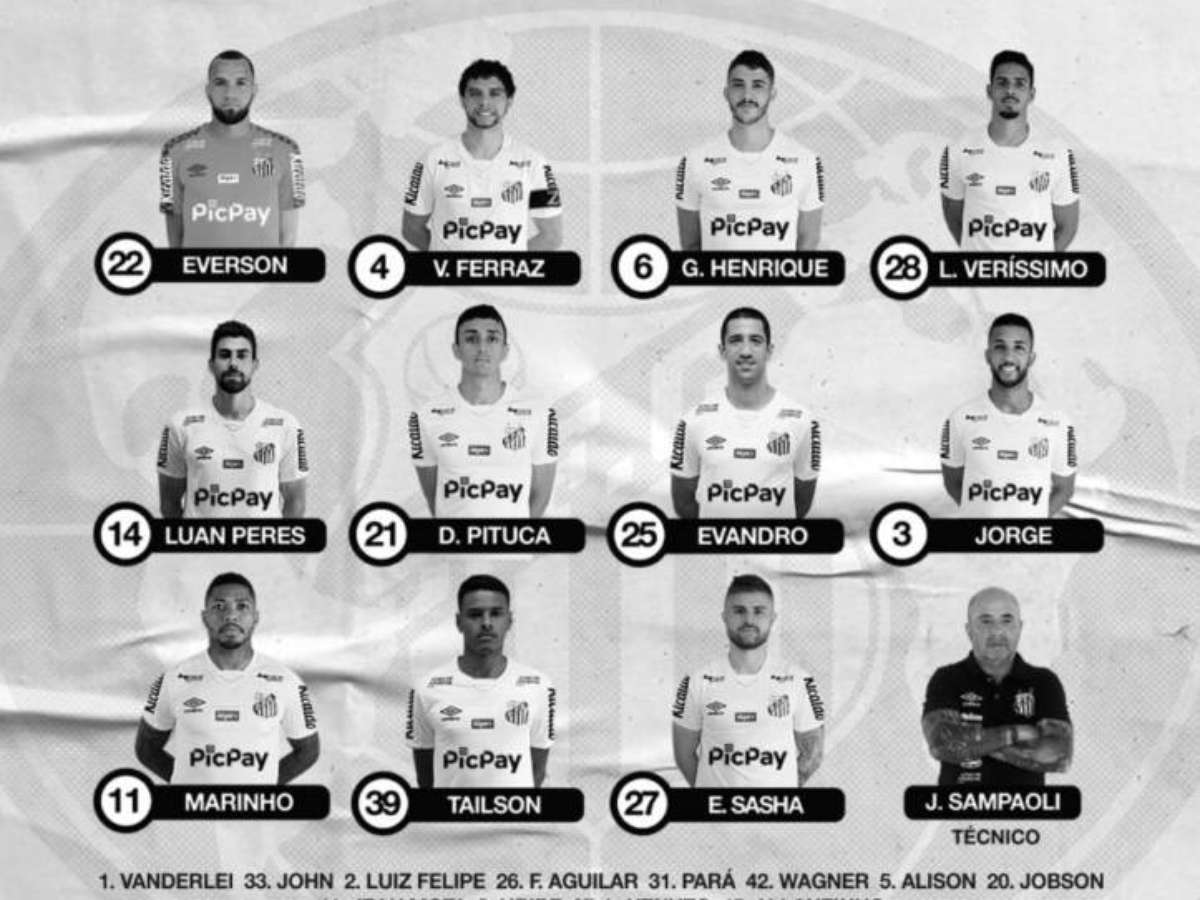 Dessa forma, o Santos entrará com Everson; Gustavo Henrique, Lucas Veríssimo e Luan Peres; Victor Ferraz, Diego Pituca, Evandro e Jorge; Marinho, Eduardo Sasha e Tailson.