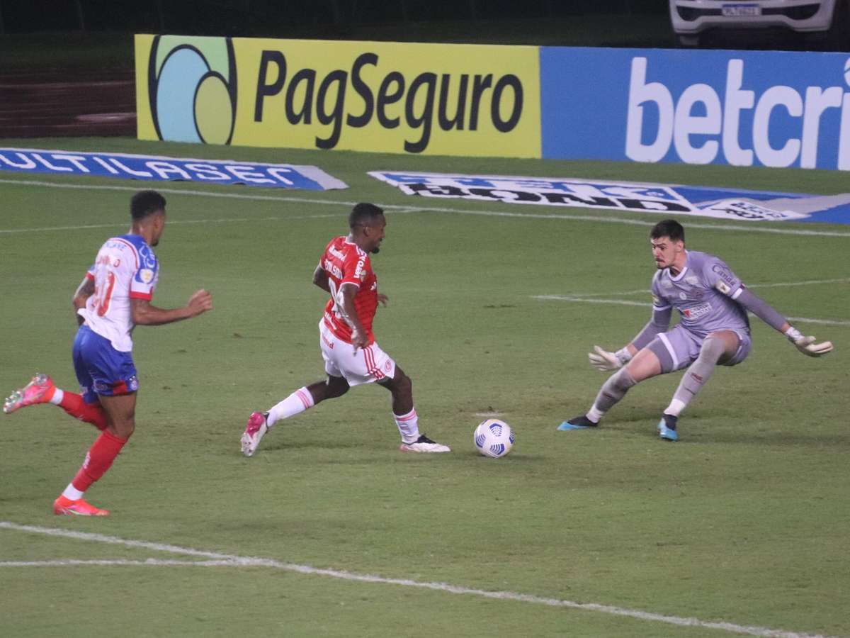 Mesmo com a inferioridade numérica, os visitantes levaram perigo na etapa fina. Primeiro, Edenilson finalizou de dentro da área para fora e, em seguida, Yuri Alberto saiu de frente para Matheus Teixeira e chutou para defesa do goleiro. O Bahia até buscou pressionar na reta final, mas esteve desorganizado e pouco conseguiu produzir.