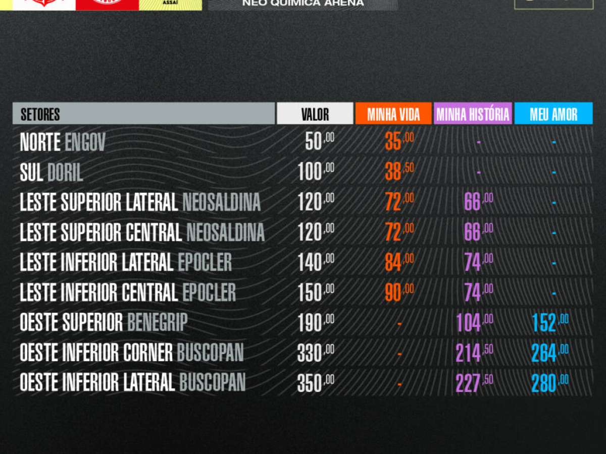 Confira todos os valores dos ingressos por setor