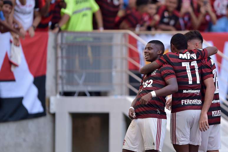 FLAMENGO - Diego Alves; Rodinei, Thuler, Rodrigo Caio e Trauco; Piris da Motta, Ronaldo e Diego (Everton Ribeiro); Berrío (Bill), Lincoln e Vitinho (Bruno Henrique). Técnico: Abel Braga.