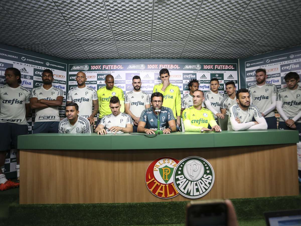 O elenco do Palmeiras está unido. A sexta-feira parecia comum na reapresentação do Palmeiras na Academia de Futebol, quando Alberto Valentim daria entrevista coletiva na sala de imprensa. Após alguns minutos de espera, porém, os jornalistas presentes foram surpreendidos pela presença de todo o elenco alviverde ao lado do treinador interino.