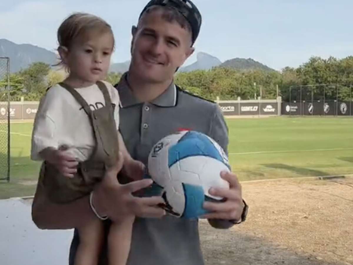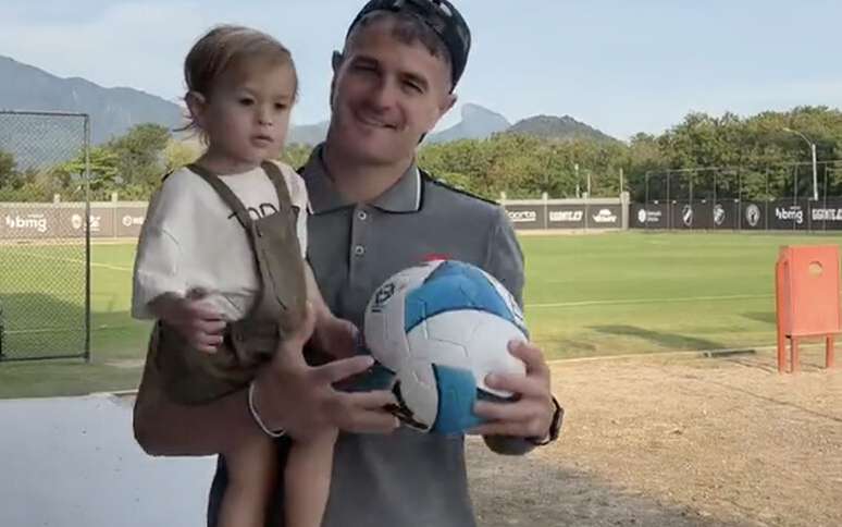 Filho de Vegetti visita o treino, e Vasco registra 'momento fofura' dos dois
