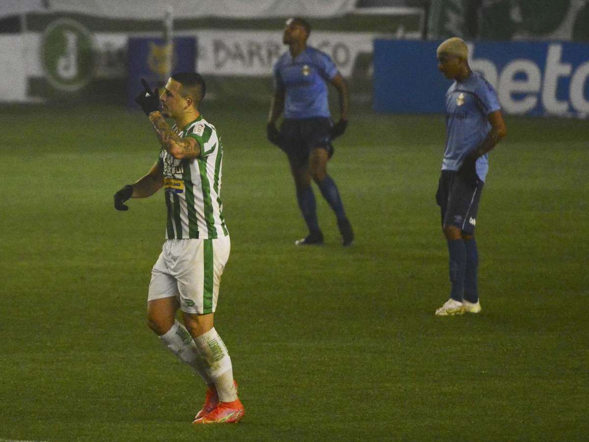 Os donos da casa, por sua vez, levaram mais perigo. Primeiro, Wescley exigiu boa defesa de Gabriel Chapecó em chute pela direita. Na sequência, o meia cobrou escanteio na cabeça de Vitor Mendes, que tirou tinta da trave.