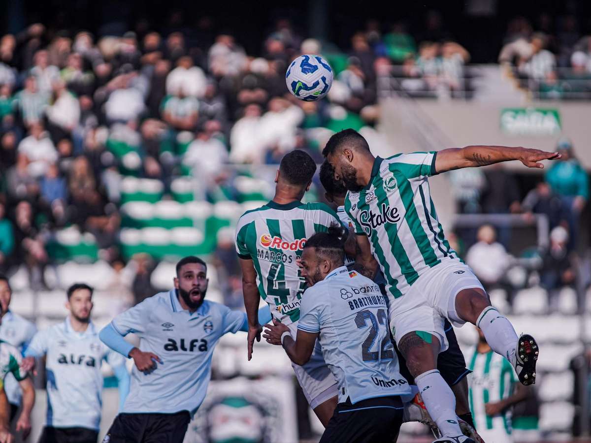 Aos 10 minutos, o Grêmio teve um pênalti a seu favor após Marcão acertar Kannemann com o braço. O dinamarquês Braithwaite bateu com categoria e abriu o placar no clássico.