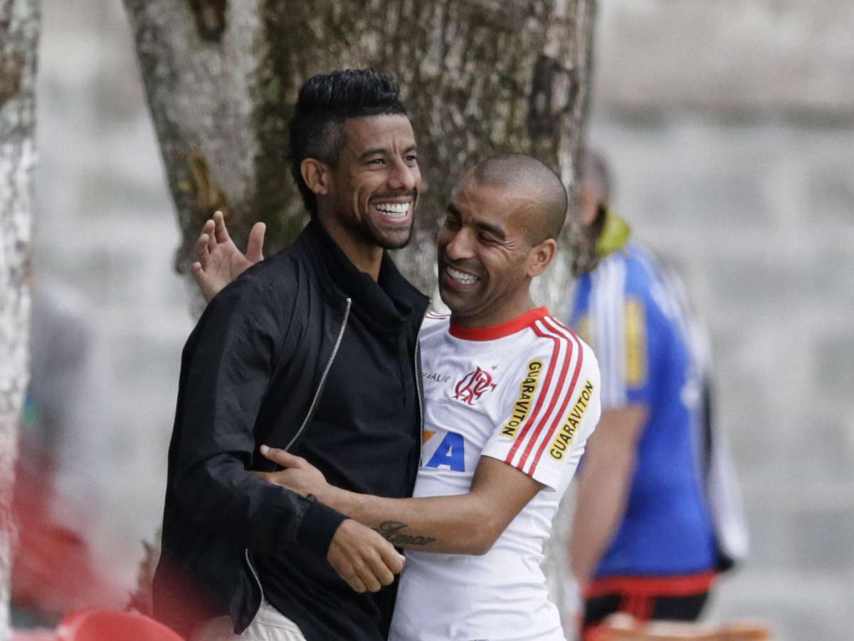 Léo Moura visita Ninho, e Cristóvão dá treino tático no Fla