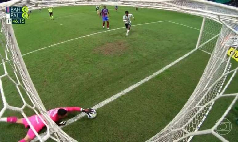 No último lance do primeiro tempo, polêmica. Artur recebeu e chutou cruzado, já caindo. Marcos Felipe encaixou para fazer a defesa tranquila, mas deixou a bola escapar. O goleiro salvou o lance, literalmente, em cima da linha — o Alviverde pediu gol, mas Wilton Pereira Sampaio recorreu ao VAR para mandar o jogo seguir.