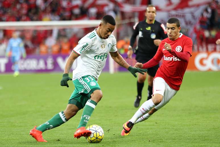 O Jogo - O Inter não soube responder ao estilo de jogo fulminante do Palmeiras. Logo aos dois minutos, Gabriel Jesus foi lançado por Cleiton Xavier e tocou por cobertura ao se deparar com o goleiro Marcelo Lomba, mas a finalização saiu torta e passou raspando a trave. Com a posse de bola no campo ofensivo, o Verdão aproveitou a superioridade e chegou ao primeiro gol.