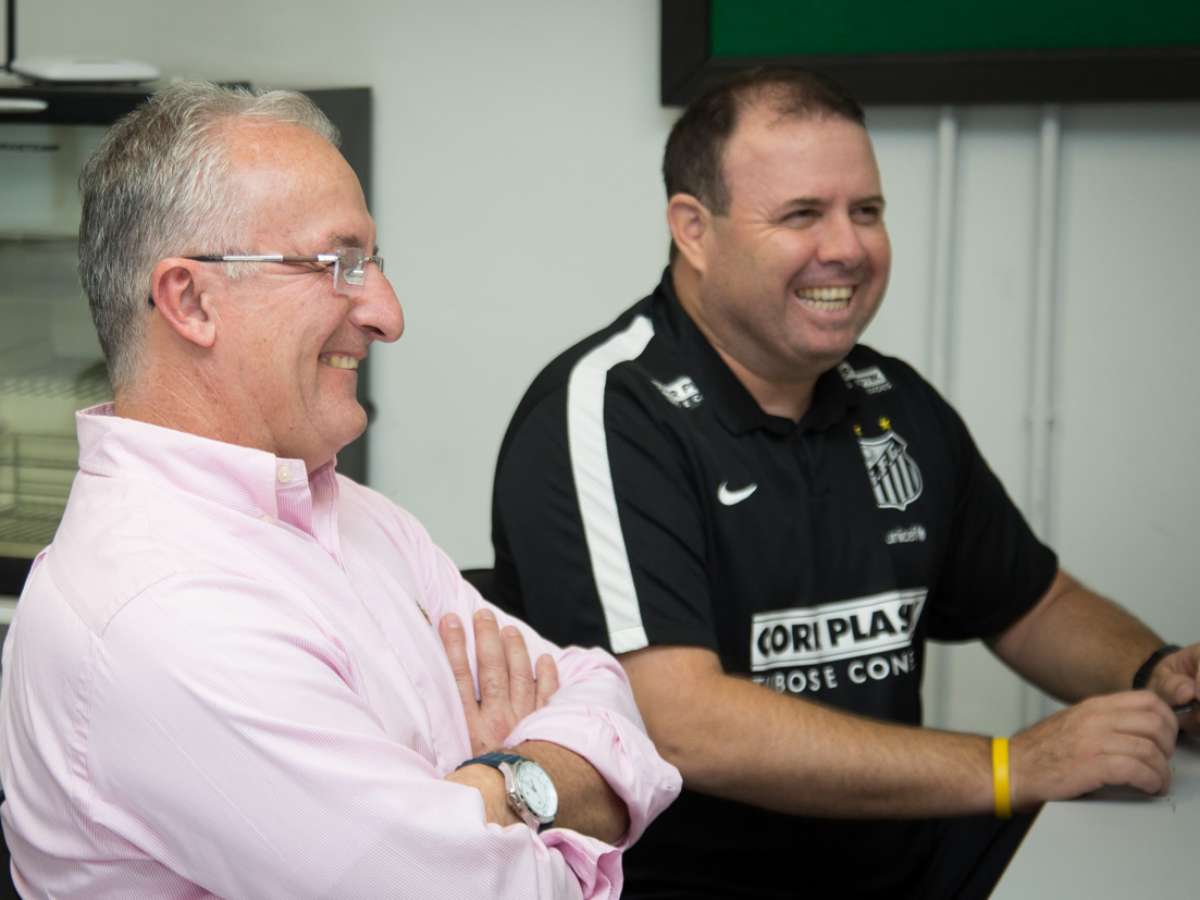 "Estamos aqui para anunciar a vinda do professor Dorival Jr. como nosso novo treinador. Ele vai ficar aqui conosco por dois anos e meio, que é o tempo que nós (diretoria eleita) ficaremos no clube. E esperamos que ele possa fazer um trabalho de redirecionar o Santos, tirá-lo desse momento difícil que estamos vivendo. E, com tudo isso, esperamos e desejamos a ele uma boa sorte, um bom trabalho e vida longa dentro do Santos Futebol Clube", disse o mandatário, que assumiu o cargo em janeiro.