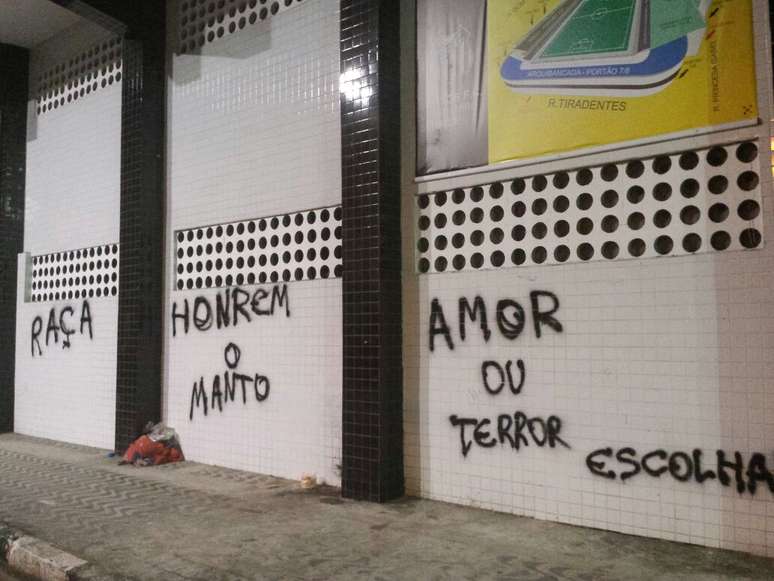 “Raça”, “Honrem o manto” e “Amor ou terror, escolham” foram os dizeres, o último mais ameaçador.