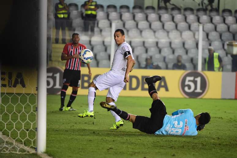 De tanto pressionar, o Santos conseguiu seu gol aos 31. Zeca cobrou falta na área e David Braz resvalou de cabeça, mandando a bola no ângulo cruzado de Renan. 1 a 0.