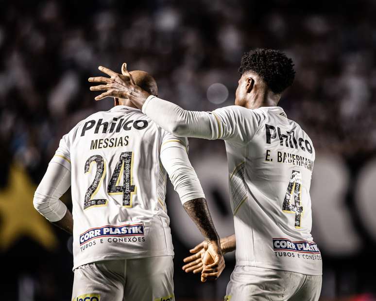 E o Santos virou o placar aos 39 minutos, com um de gol de centroavante de Bauermann. Soteldo cobrou falta na área, Mendoza raspou de cabeça, e o zagueiro aproveitou a saída de Cavichioli para tocar de cobertura sobre o goleiro e dar vantagem parcial ao Peixe.