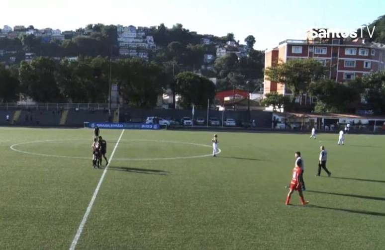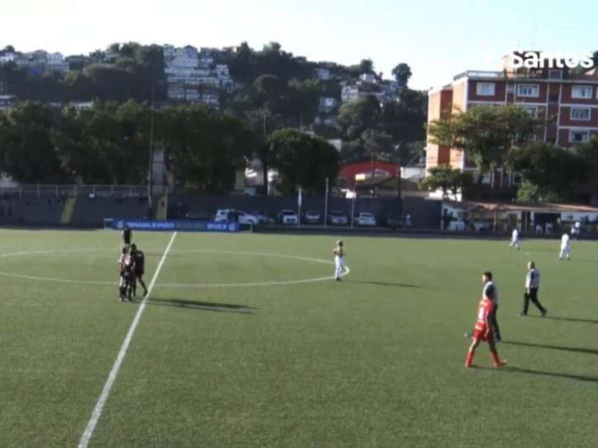 Com boa vantagem construída na ida, o Santos começou o jogo de forma cautelosa e deixou o Inter tomar a iniciativa. E foram do Colorado as duas melhores oportunidades antes dos 30 minutos. Na melhor, Riquelmy, quase na pequena área, cabeceou por cima. Na outra, o goleiro Gustavo mandou bem. Mas foi o Santos que fez o gol. Balão iniciou um contra-ataque e deu para Hyan que lançou Fernandinho pela direita. O cruzamento foi perfeito Enzo Monteiro que fez 1 a 0.