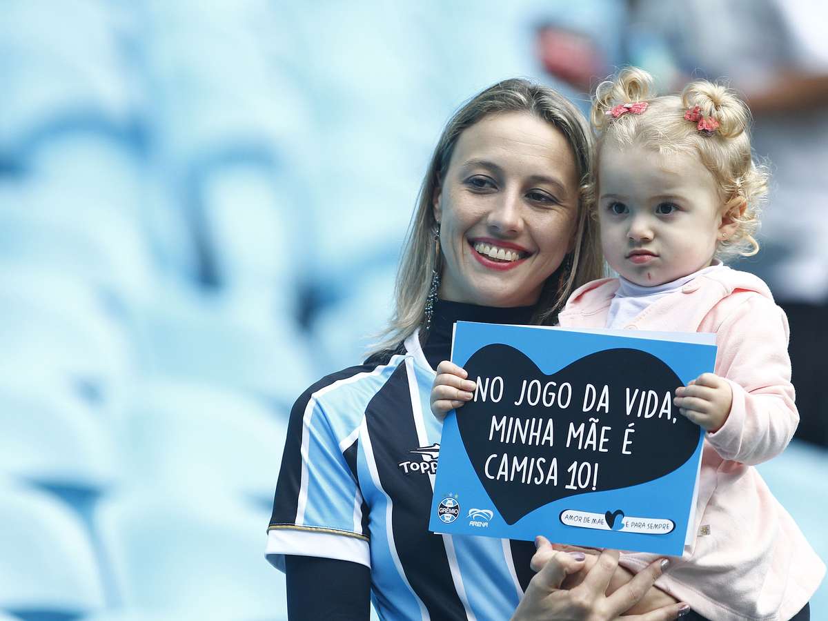 Em jogo único do Brasileiro às 11h (de Brasília) na Arena, mamães gremistas ganharam cartazes e exibiram sorrisos com filhões
