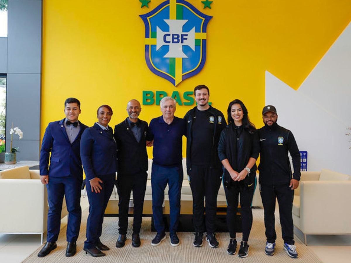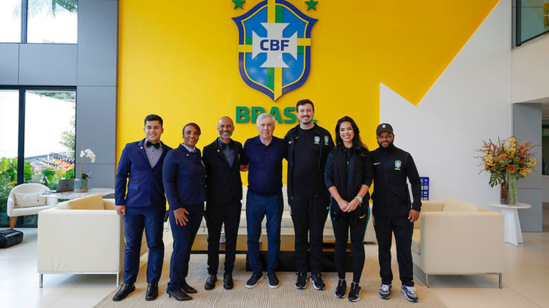 Na terça-feira, Ancelotti visitou a sede da Confederação Brasileira de Futebol (CBF), localizada na Barra da Tijuca, no Rio. Acompanhado pelos auxiliares Paul Clement e Francesco Mauri, além do analista de desempenho Simone Montanaro, o treinador foi recebido pelo novo presidente da CBF, Samir Xaud, e pelo coordenador executivo geral das seleções masculinas, Rodrigo Caetano.