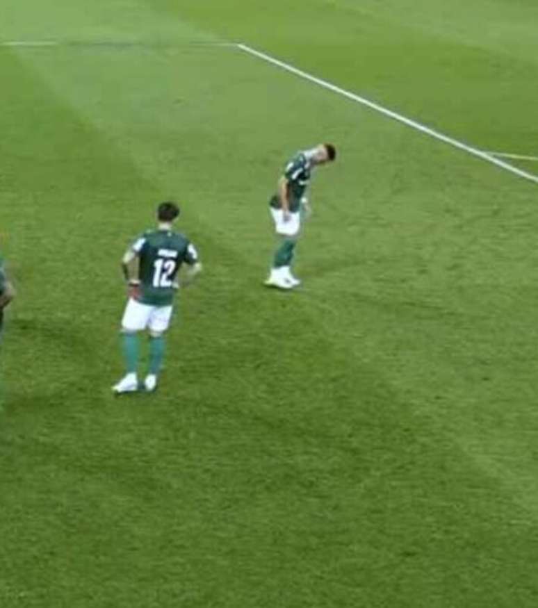 Enquanto o time do Palmeiras protestava, Andreas Pereira pisoteou a cal onde a bola seria posicionada para a cobrança, o que fez com que Memphis Depay escorregasse e chutasse pra fora.