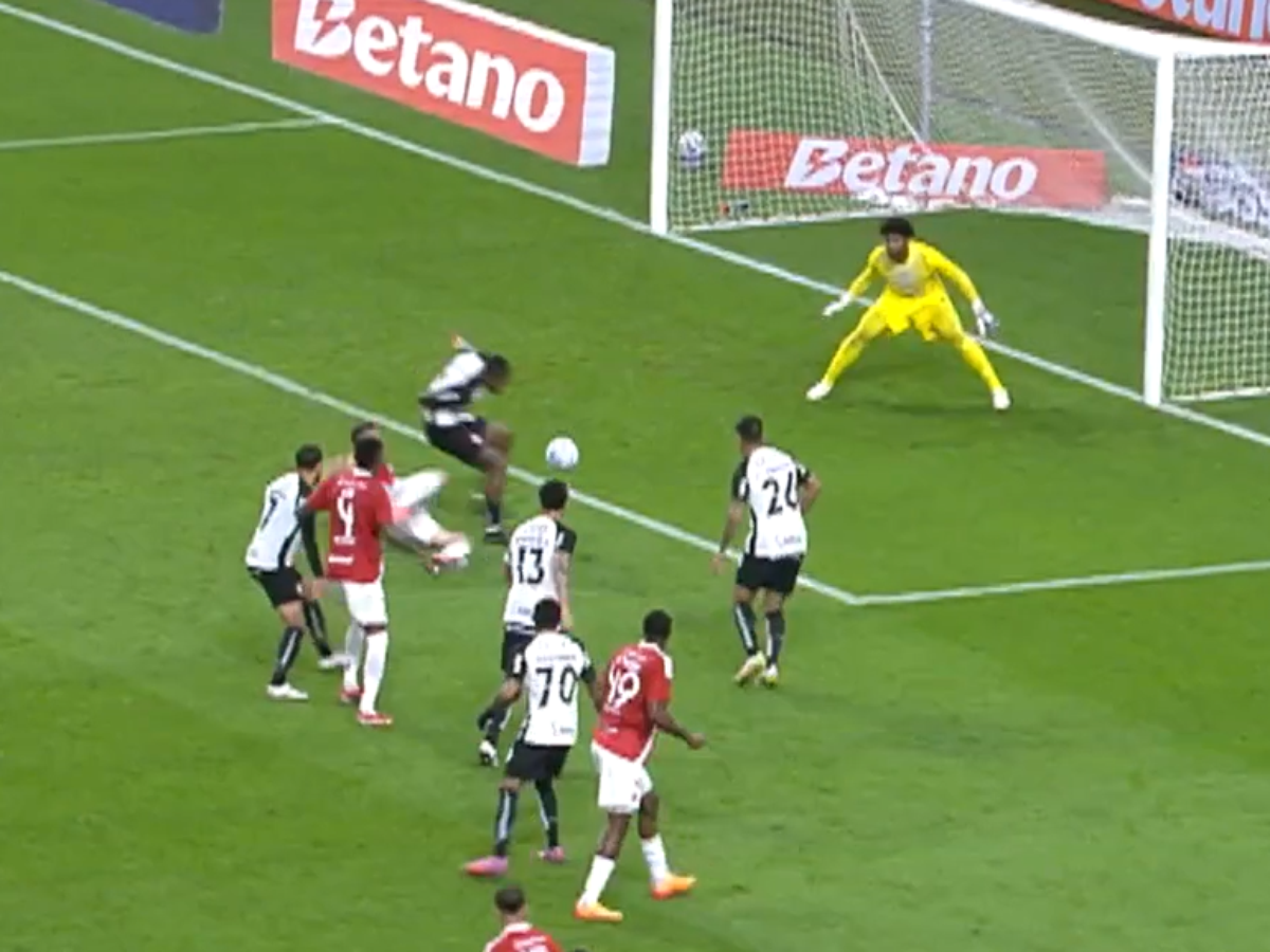 "Ok, Gilberto. Esse puxão, para mim, entendo que impacta, ok?" diz Rodrigo de Lima. "Concordo, sim, por isso que lhe chamei. Entendo que impacta, sim", ratificou o VAR. Carbonero foi para a bola e marcou o gol de empate do Inter. O Corinthians balançou as redes ainda no início da partida, aos nove minutos, com Gui Negão.