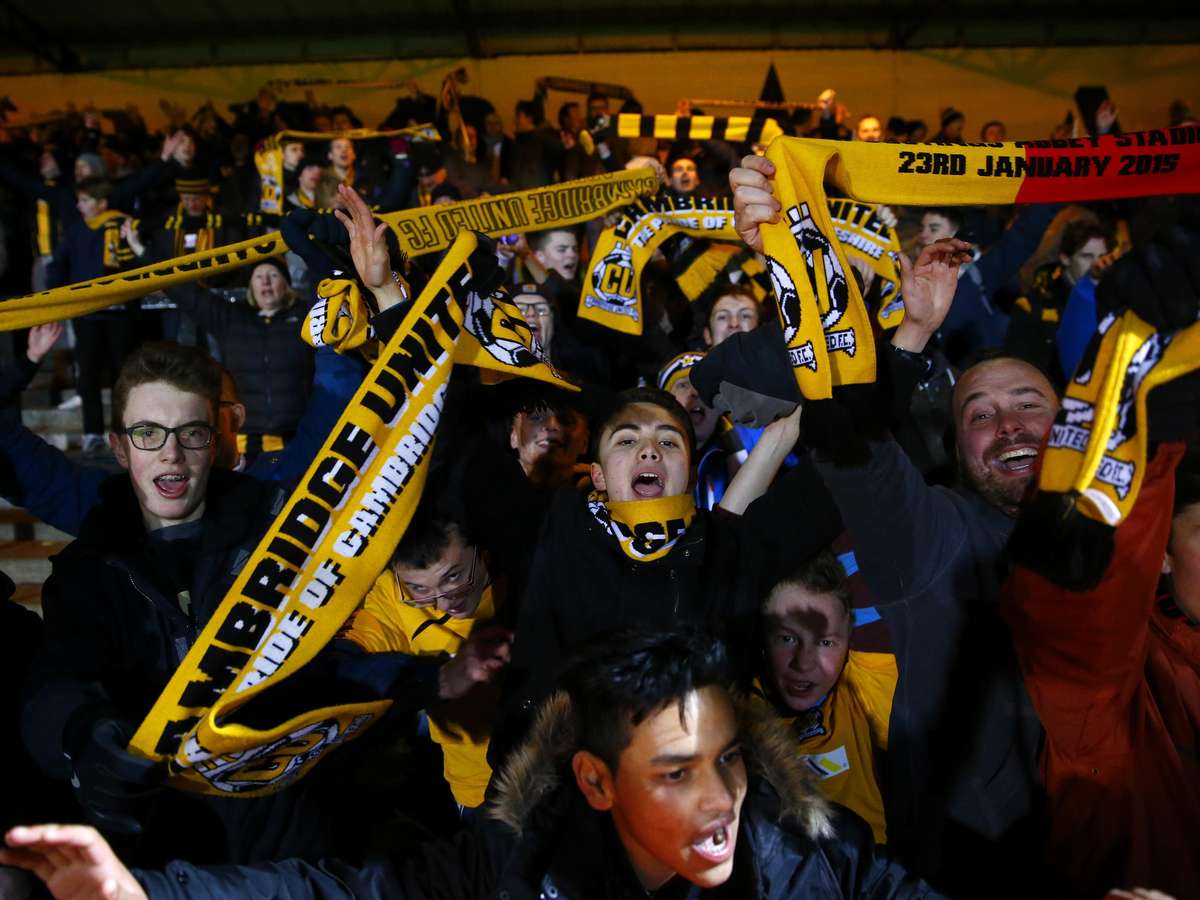 Separados por 75 lugares na pirâmide do futebol inglês, Cambridge e Manchester protagonizaram um primeiro tempo franco no Abbey Stadium. 12º colocado na quarta divisão, o clube da casa não se intimidou e criou a primeira chance: logo aos 6min, Tom Elliott aproveitou bola alçada por Donaldson, mas testou para fora. Os visitantes responderam em chute do holandês Blind, bem contido por Dunn.
