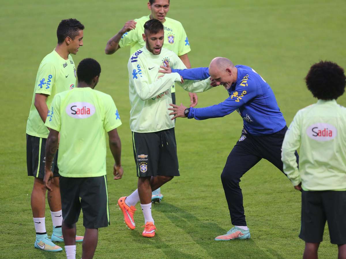 Dunga dividiu o grupo em dois, a maioria para treinar em campo sob orientações do técnico, enquanto outros atletas foram à sala de musculação para realizar trabalhos com o fisioterapeuta Carlos Alberto Presinoti e o preparador físico Anderson Paixão.