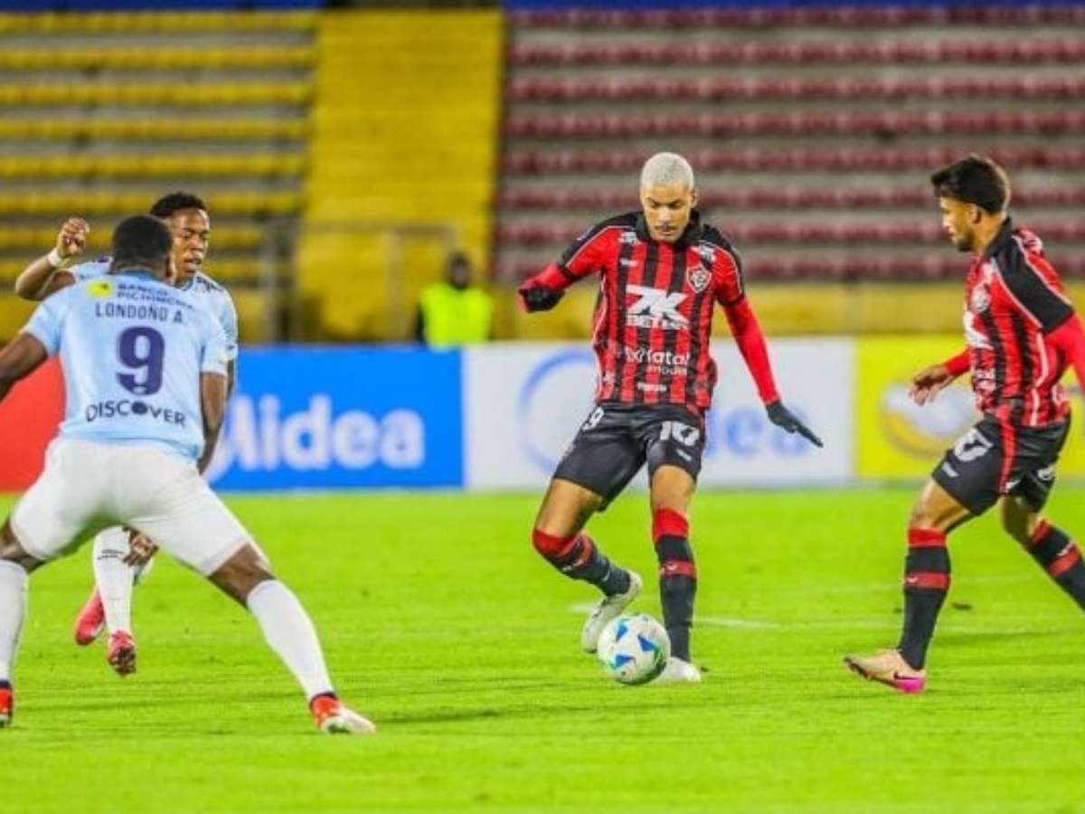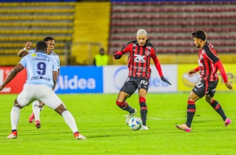 Mesmo com um jogador a mais desde os 15 minutos do primeiro tempo, o Leão da Barra não conseguiu transformar a superioridade numérica em vantagem no placar e foi eliminado da competição. A partida começou equilibrada, com posse de bola dividida. Após revisão do VAR, Troya, da equipe equatoriana, foi expulso por pisar no tornozelo de Claudinho. Com um a mais, o Vitória teve as melhores chances ainda na etapa inicial. Matheuzinho, em duas ocasiões, e Janderson chegaram perto de marcar, mas falharam nas finalizações.