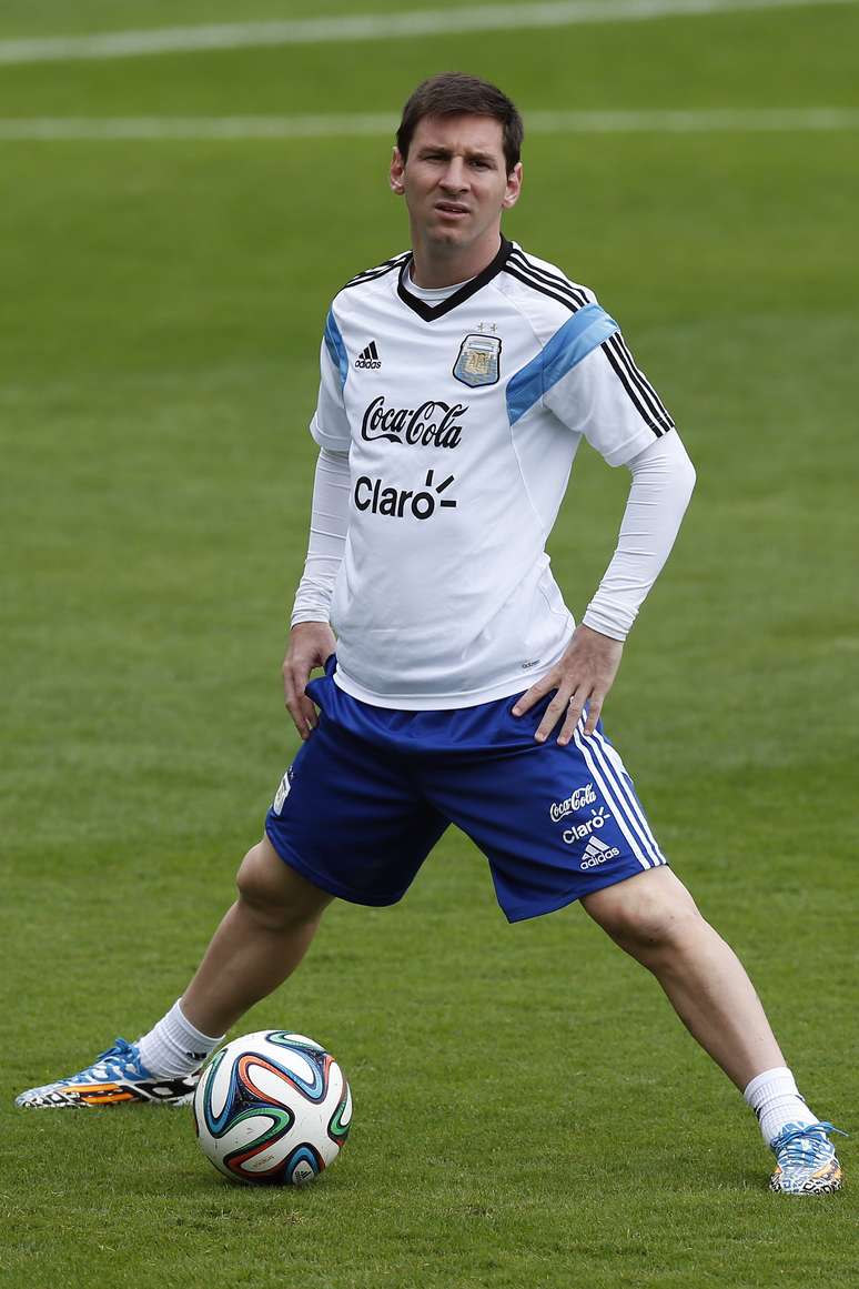 Messi, a grande estrela da seleção argentina, faz exercícios na manhã desta quinta-feira; time estreia contra a Bósnia neste domingo (15)