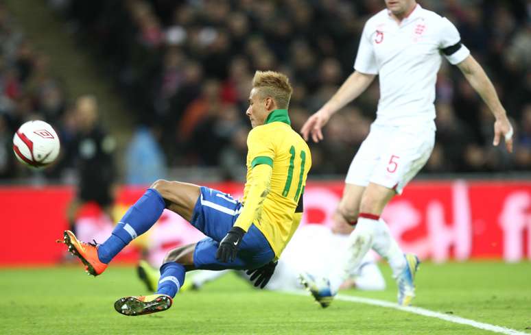 Em Londres, a Inglaterra confirmou favoritismo contra o Brasil e venceu amistoso por 2 a 1, nesta quarta-feira. Os gols foram marcados por Rooney (foto), Lampard e Fred
